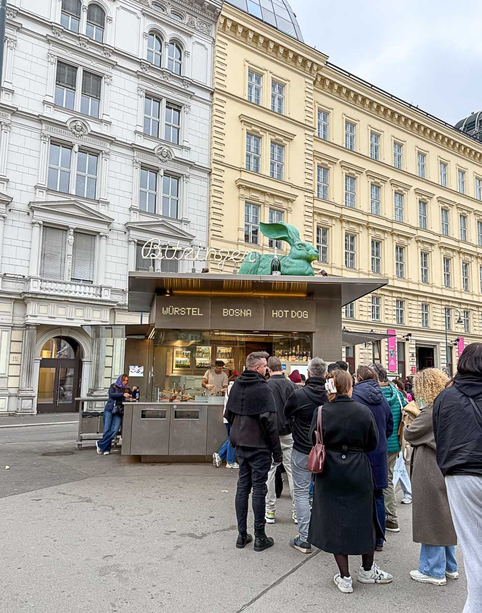 Travailleurs en pause, étudiants, noctambules ou spectateurs sortant de l'opéra : tout le monde s'y retrouve, sans distinction. On y trouve toujours les classiques (Frankfurter et Käsekrainer ), mais plusieurs stands proposent désormais aussi des options végétariennes et véganes.