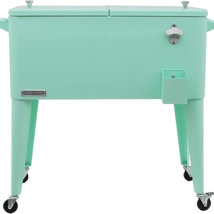 This is the perfect cooler to keep food and drinks cool. It comes with a bottle opener (handy!) and because it's on wheels, it can be moved easily.