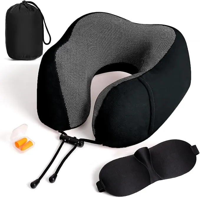 It also comes with a sleeping mask and earplugs, making it a complete kit to sleep well on the plane.