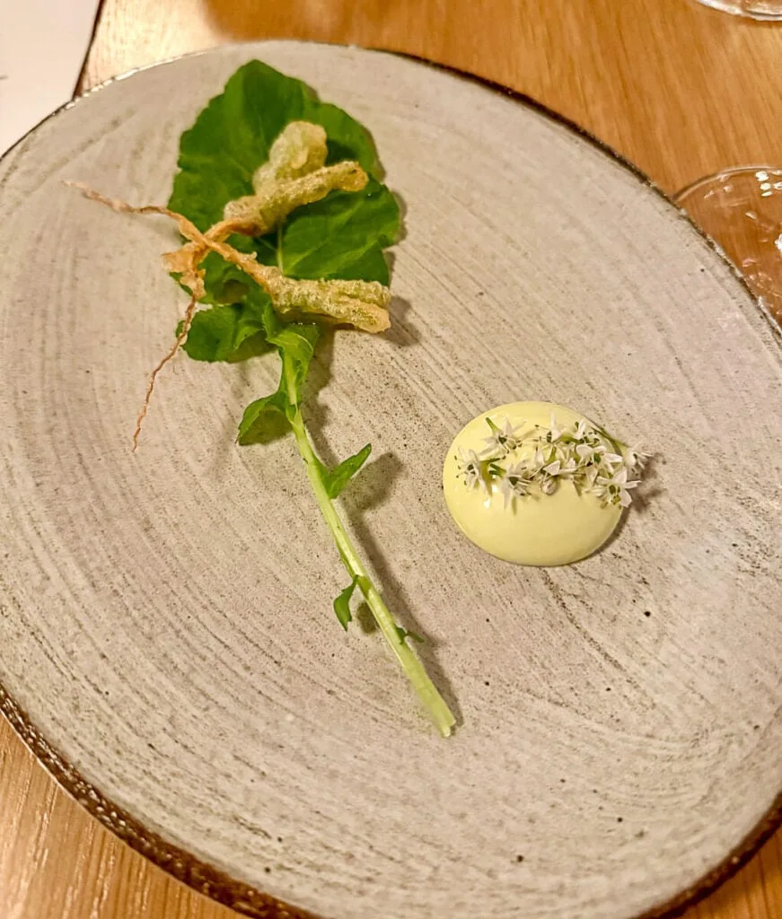 Le repas commence dans la serre ou au jardin, verre à la main, avant de se poursuivre autour d’une succession de plats créatifs.