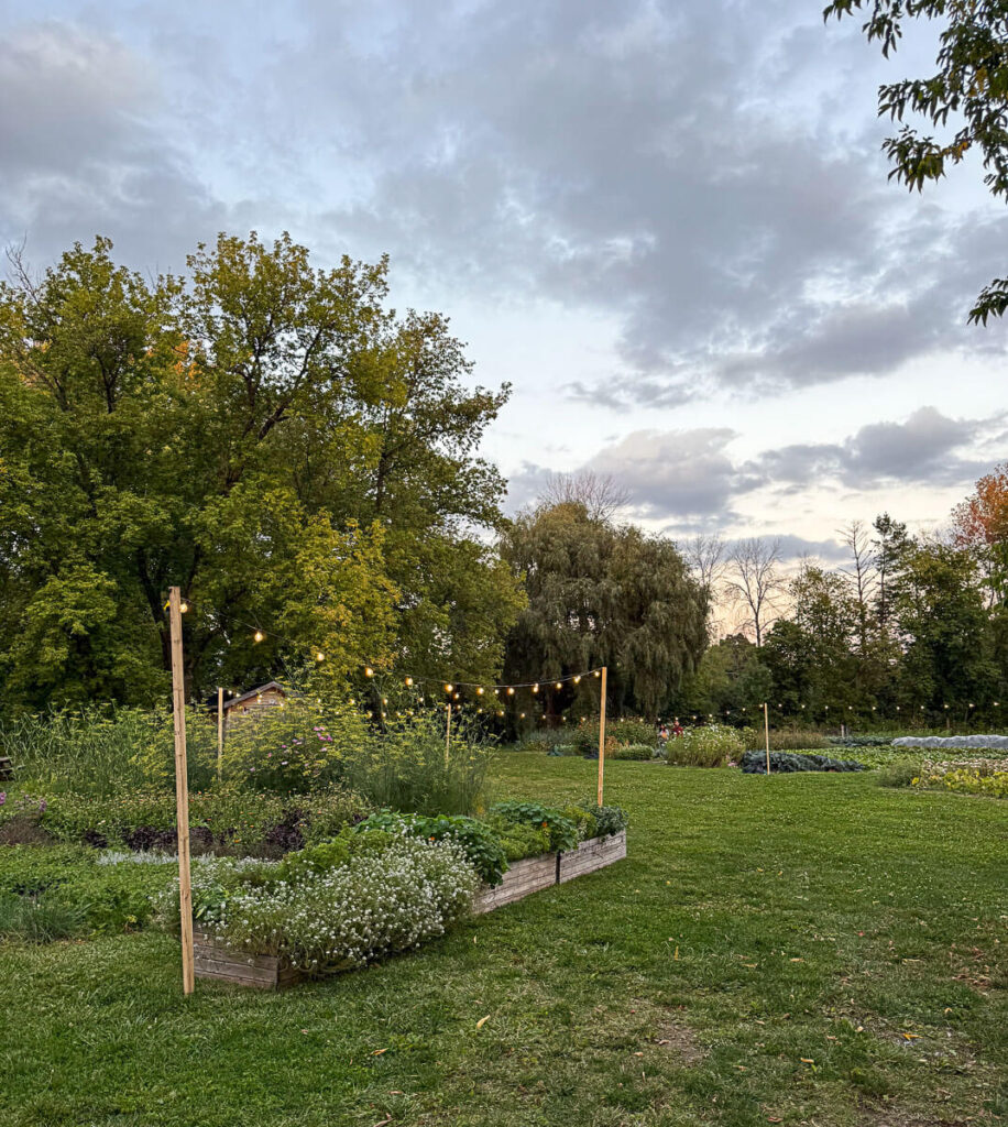 Le jardin maraîcher, fondé par Jean-Martin Fortier, sert de garde-manger principal au restaurant, complété par des producteurs locaux dans un rayon de 20 à 30 km.